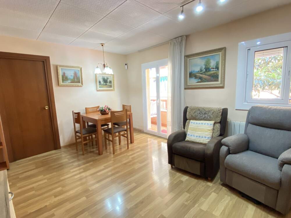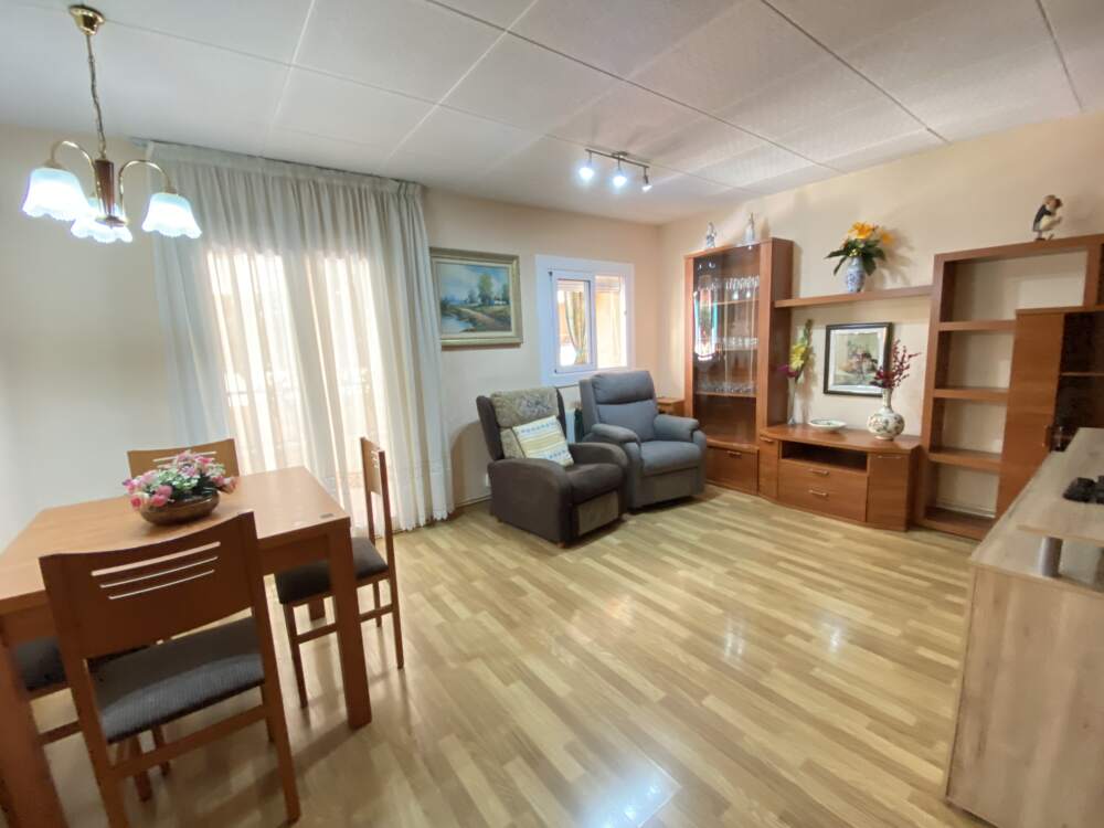 63 m² bien distribuidos: 2 habitaciones (1 doble + 1 individual). En origen eran 3, pero una se integró al salón para crear un espacio acogedor y funcional de 16 m².